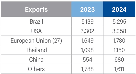 Note that, in all its projections, the USDA continues to disregard exports and imports of chicken feet/paws. Therefore, the effective values will be higher than those indicated, especially with regard to Brazil and China.